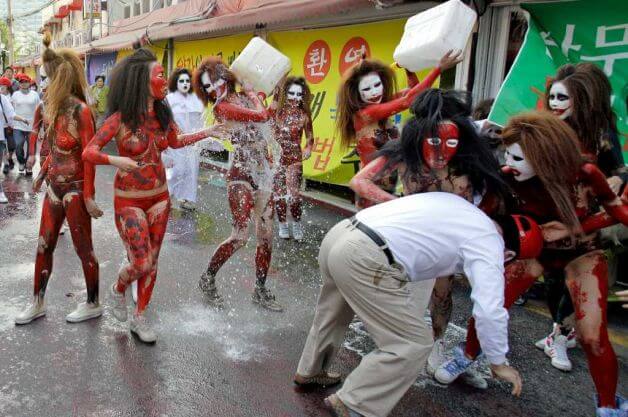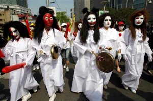 Tuesday’s escalations consisted of many women dressing in white face paint and robes used for traditional mourning ceremonies while others in red caps and masks. Still others wore masks, full body paint and attempted to light themselves on fire for the cause. No one was injured in this rally and all attempts to become the human torch were stopped by fellow rally members.