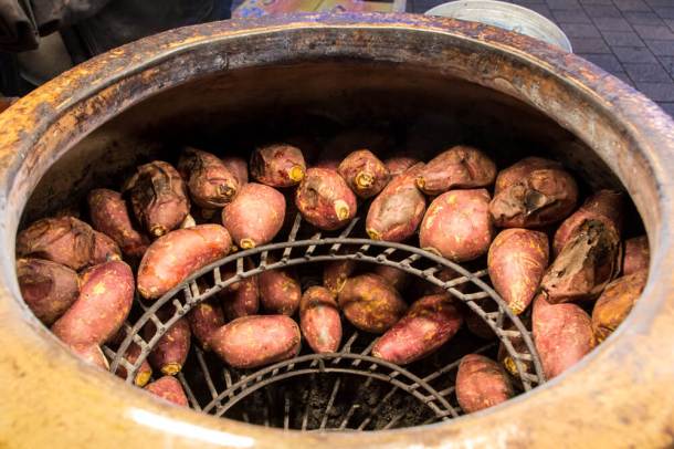 Roasted sweet potatoes are my all time favorite winter snack. They are available all over Korea. Even convenience stores sell them. Different street vendors prepare them in different ways, but the best way (impo) is to roast them inside a giant ceramic jar or hangari (항아리) filled with hot coal. It cooks the them nice and evenly so you get a soft, sweet and very light smokey tasting sweet potato. This particular type of vendor is a bit trickier to find, so if you do… go for it! It’s the best and definitely worth trying if you happen to be in Korea during the winter. At only ₩3,000 a potato, it’s a cheap and delicious way to get warm and satisfy your food baby.