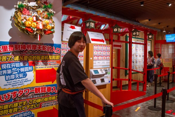The Ebisu Tower Ferris Wheel was built back in 2005 in the front of Don Quijote, a 24 hour discount mall. After only 3 years, it was shutdown due to a mechanical fault. Now, after a 10 year hiatus, the wheel is finally up and running and we decided to give it a shot.