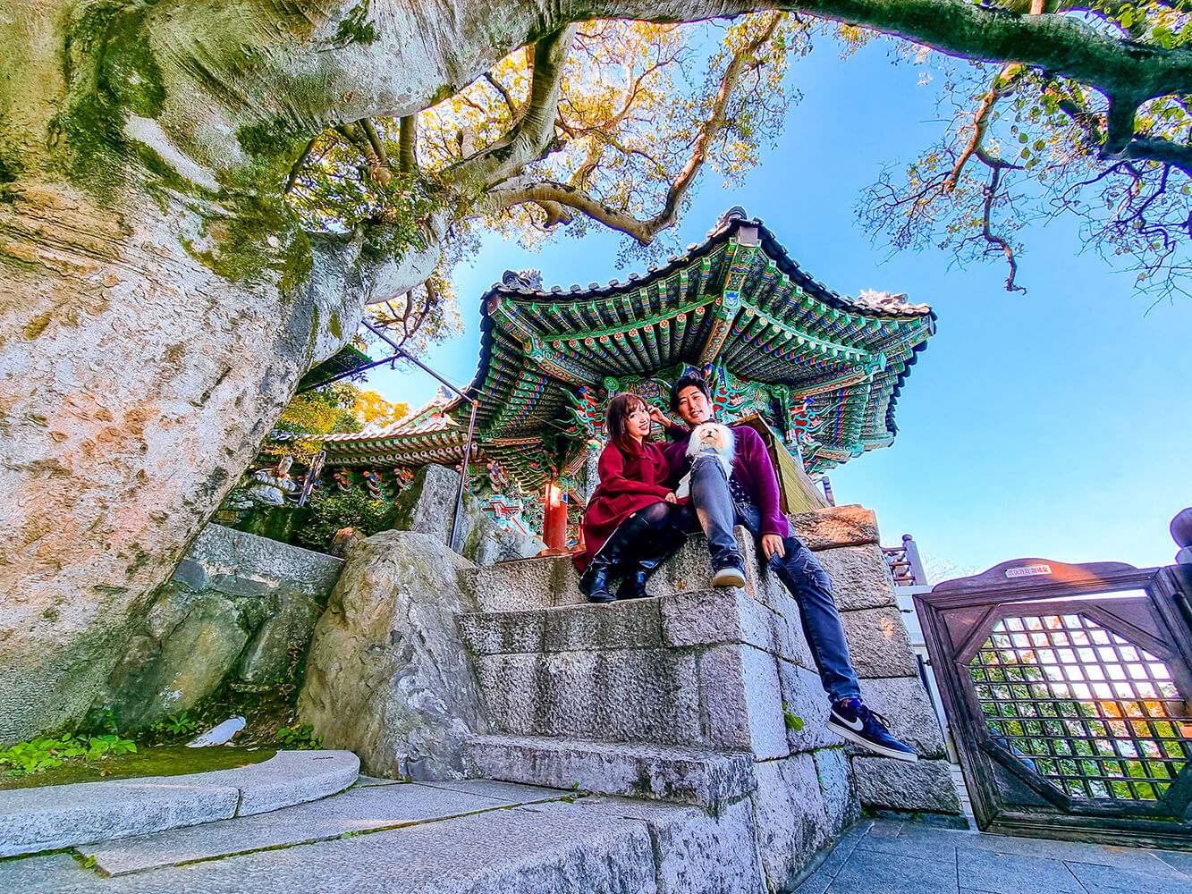 Once we paid our admission fee (2,000 KRW), we were greeted by the steep steps leading to Iljumun Gate. There’s an easier path that winds around the steps, but we’d recommend taking that path down. The steps lead right up to the main gate of the temple which is worth seeing on your way into the temple.
